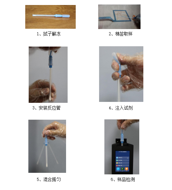 采用化學(xué)反應(yīng)檢測(cè)ATP,用拭子采集標(biāo)本,拭子被緩沖液浸濕,這樣有助于從干燥或濕潤(rùn)的表面提取生物物質(zhì)(ATP)。拭子也含有一種可以沖破生物膜的試劑,使其下可能存在的生物體暴露出來。標(biāo)本采集后,拭子應(yīng)浸泡在能將細(xì)胞內(nèi)ATP釋放出來的容劑中。而后細(xì)胞內(nèi)部釋放出的ATP、以及拭子從設(shè)備表面抹取的ATP再拭子獨(dú)特的液體試劑一起反應(yīng)。拭子的液體試劑含有兩種螢火蟲酶---熒光素和熒光素酶,蟲熒光素和蟲熒光素酶在ATP存在的條件下會(huì)發(fā)光。發(fā)出的光可由冠宇儀器ATP熒光檢測(cè)儀進(jìn)行檢測(cè)。檢測(cè)的發(fā)光量與ATP的總量成正比。數(shù)值越高,表明ATP的量越多,也就意味著表面的殘留物越多。